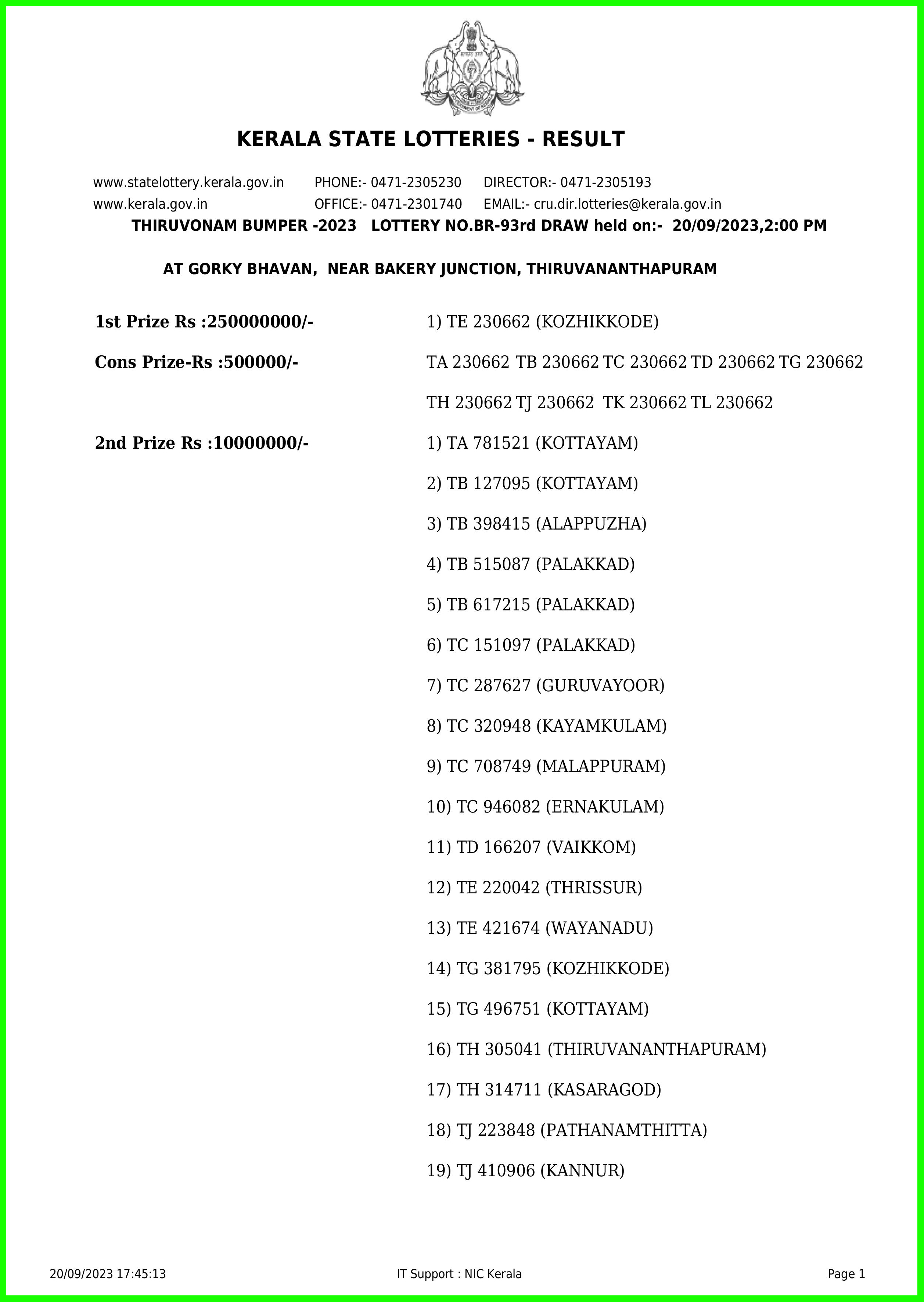 ONAM Thiruvonam Bumper Lottery Result 20092023 (BR 93) Kerala , Kerala onam bumper result 2024 today live updates:
